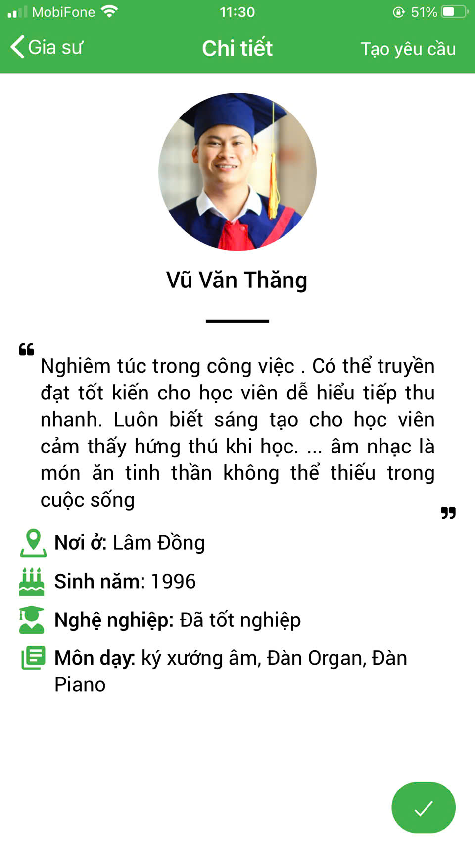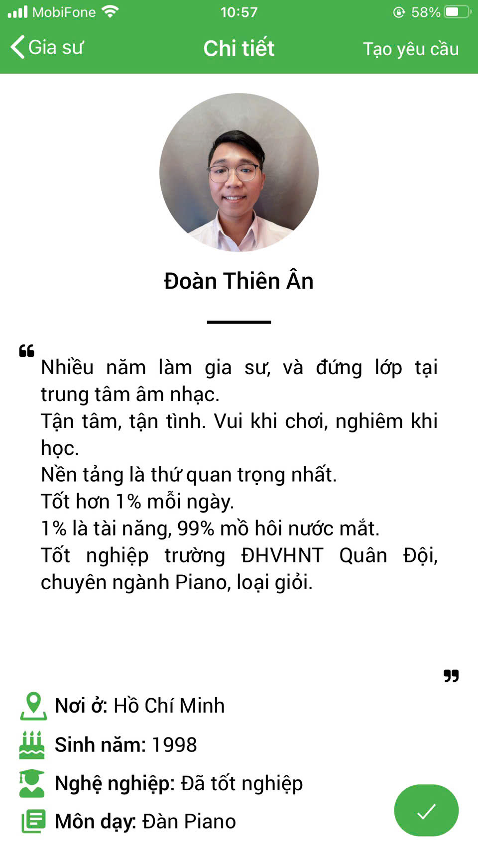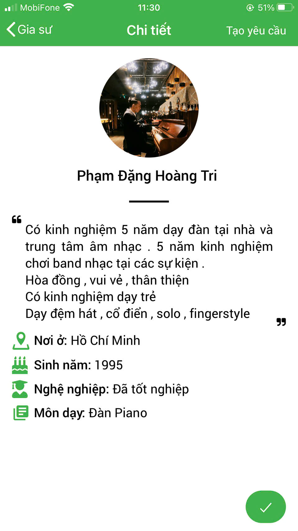 XEM THÊM PROFILE GIA SƯ DẠY ĐÀN PIANO TẠI HỆ THỐNG DAYKEMTAINHA.VN >>